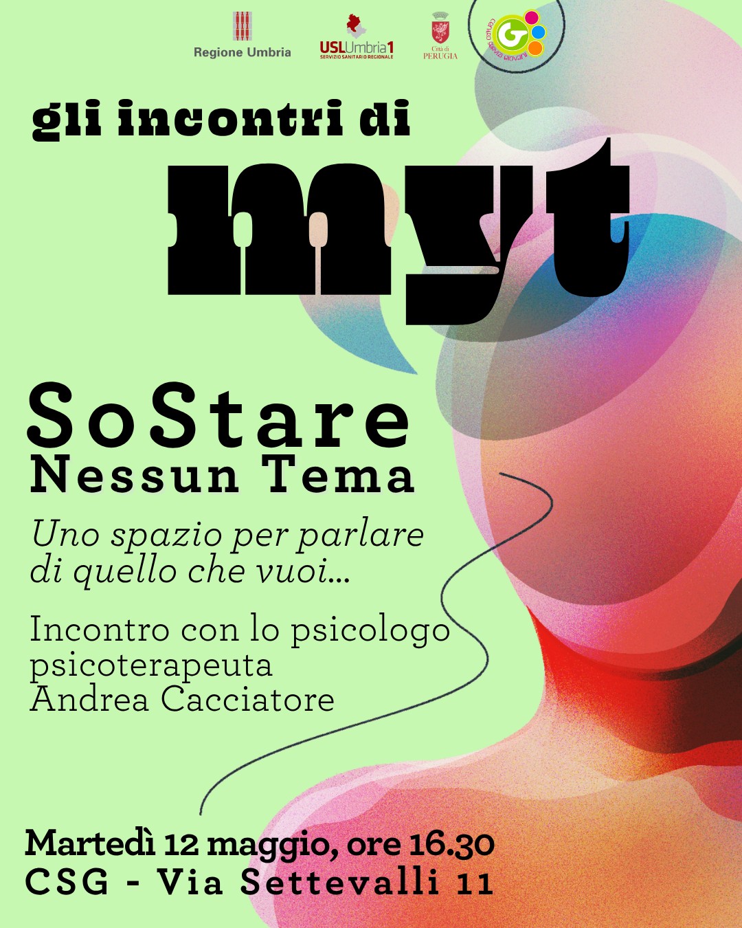 Apertura straordinaria per l'incontro con lo psicologo psicoterapeuta Andrea Cacciatore del punto di ascolto Myt sul tema SoStare Nesun Tema - Uno spazio per parlare di quello che vuoi