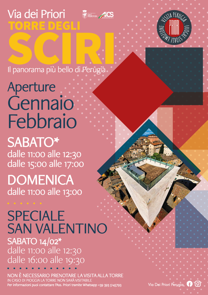 A gennaio e febbraio la torre è aperta il sabato dalle 11.00 alle 12.30 e dalle 15.00 alle 17.00, la domenica dalle 11.00 alle 13.00