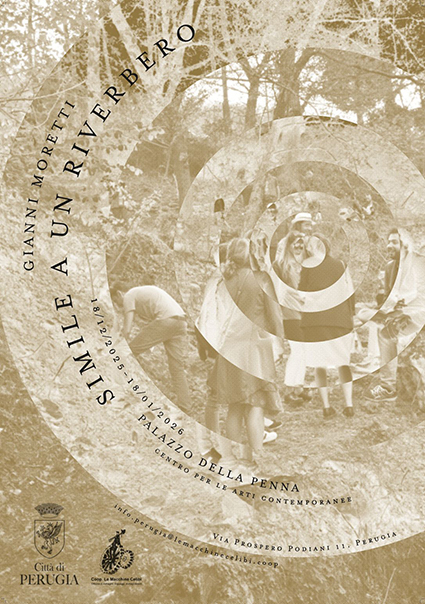 In ognuno di questi lavori l'artista ha sentito e tradotto il corpo del fruitore come una cassa di risonanza, un luogo di riverbero in cui l'opera riecheggia e si moltiplica. È da questa riflessione che la mostra prende il titolo Simile a un riverbero, in cui la parola simile pone la dimensione collettiva e quella più privata e personale in un dialogo costante e circolare. Questa dinamica, presente nel lavoro di Moretti, si concretizza nel rispetto e nell’ascolto del corpo dell’Altro, al quale chiede tempo e attenzione.