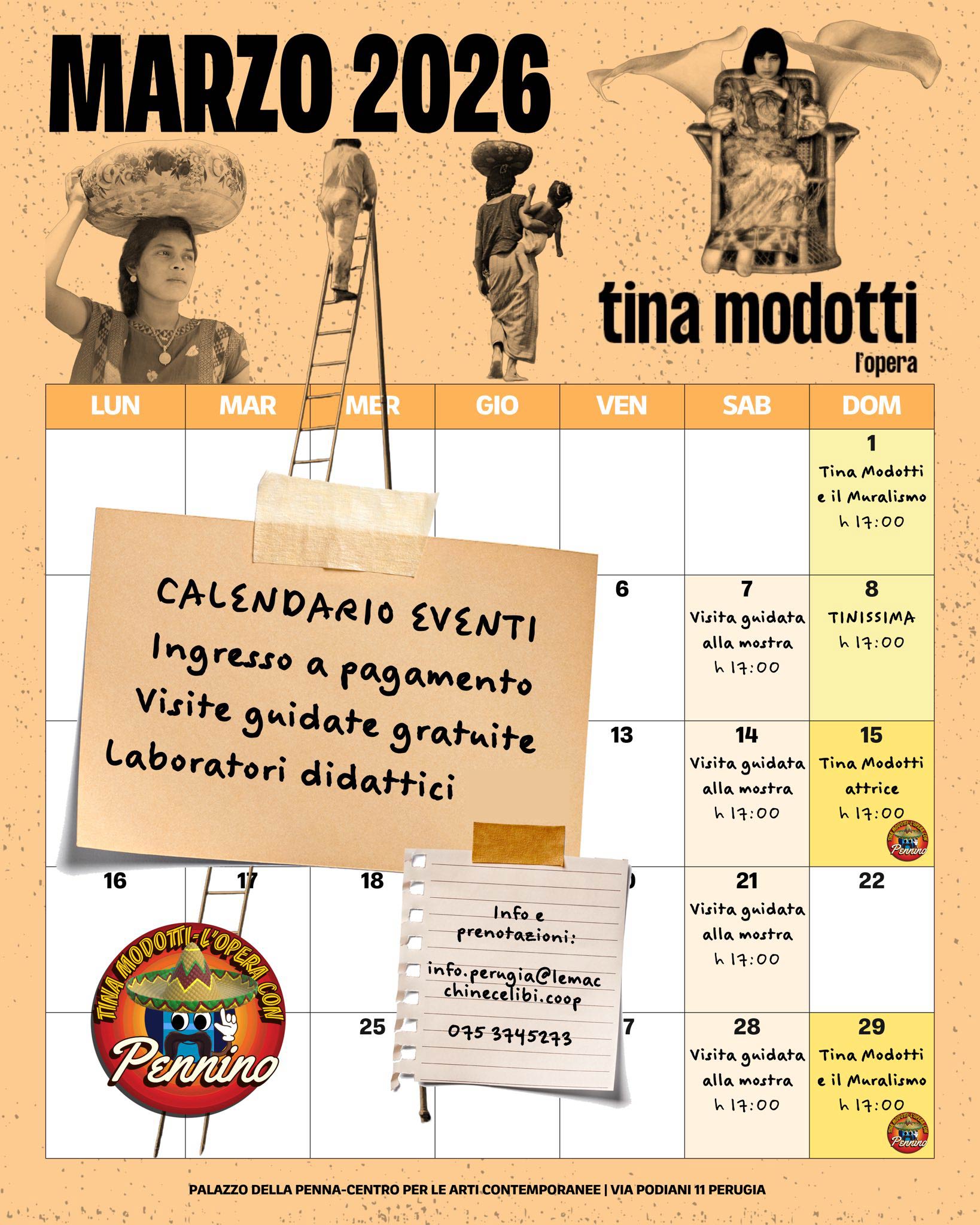 La mostra monografica è promossa dal Comune di Perugia in collaborazione con CAMERA – Centro Italiano per la Fotografia di Torino e Cinemazero di Pordenone, che custodisce l’archivio Modotti più ampio al mondo, e con il gestore dei servizi per il pubblico e delle attività di valorizzazione del circuito museale comunale, Le Macchine Celibi soc. Coop.