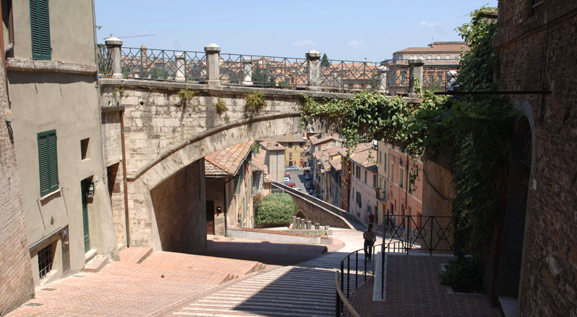 The construction of the aqueduct started in 1254 and finished in 1280 under the guide of Fra Bevignate and Boninsegna da Venezia. It is about 4 km long and was built to bring water from the Monte Pacciano to the Fontana Maggiore. An extraordinary hydraulic work has been accomplished using a pressure forced duct to give water an upwards direction. In 1322 the realization of a more direct duct was ended even if with more difference in height and pressure. This is witnessed in the plaque placed on the higher bucket of the fountain.