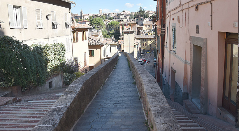 During the first half of XIX century, its last stretch arriving in the city before the subterranean bit, no longer functioning, was turned in a characteristic pensile path. It was done to connect Porta S. Angelo District to the city centre in an easier way. It is composed by a bridge supported by ten spans with round arches and an added parapet. Some houses have been built attached to it with accesses in height, making the pedestrian path one of the most typical streets of the city.