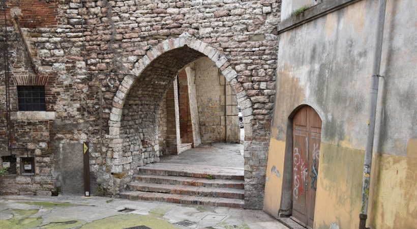 The “Arco dei Funari” is made of white and pink stone and is South-oriented in the Porta S. Pietro district. Its name takes origin from the rope making profession, which was present in this area with several workshop.