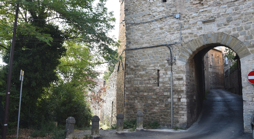 The gate takes its name from a nearby Benedictine cloister, called “dello Sperandio” due to the inscription “Spera in Deo 1696” (Beleive in God) over the entrance door, still visible today. The cloister, transformed into a villa in 1799, was built on an Etruscan necropolis used between the VI and III Centuries b.C., testified by the recovery of an Etruscan hypogeum in the 1900. The area is today a private property.