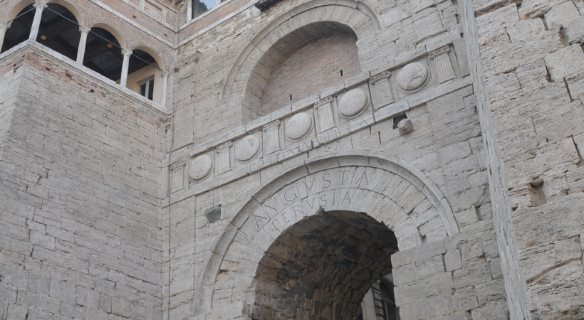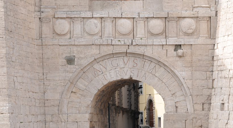On the lower arch is written Augusta Perusia, inscription which was made two centuries after its construction, following the Bellum Perusinum (41-40 BC), an important episode of the Civil Wars that blooded the period of the late Republic and the subsequent renovation commissioned by Augustus, hence the name Arco di Augusto (Augustus Arch). The inscription Colonia Vibia, above the arch, commemorates Vibio Treboniano Gallo, an Emperor from Perugia who granted the town the status of colony.