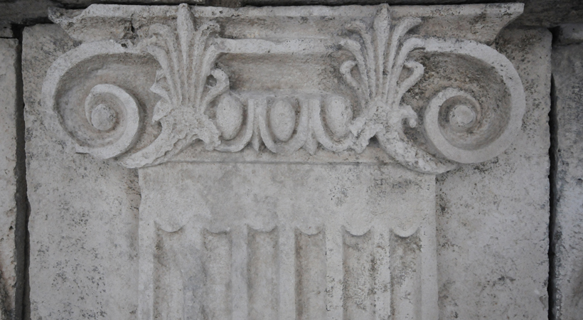 Built in travertine blocks, it is composed of two trapezoidal towers and a monumental façade in the center, composed of two rounded, overlapping arches. The upper arch is originally presumed to be open for military functions.