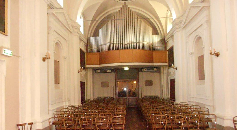 The welcoming ambient is designated as concert hall since 1961, when was provided of a Mascioni pipe organ composed by 1375 organ pipes, 3 keyboards and a pedalier. Two pianos allow very interesting artistic executions that make the auditorium an excellent place for chamber music. Every year it houses “concert seasons”, artistic and cultural meetings and conferences.
