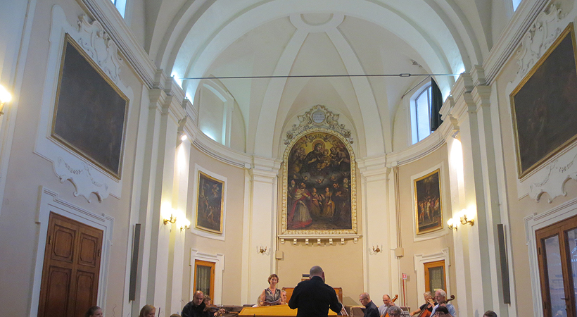 The auditorium also preserves paintings of XVII and XVIII century, by Benedetto Bandiera, Giacomo Boccanera, Cristoforo Gasperi, Vincenzo Monotti. The management is entrusted to the musical diocesan institute “G. Frescobaldi”.