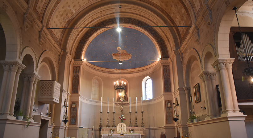 During the reconstruction works, the only side of the edifice that was not destroyed was the apse wall, which became the right chapel of the new church, where two fresco cycles can be admired.