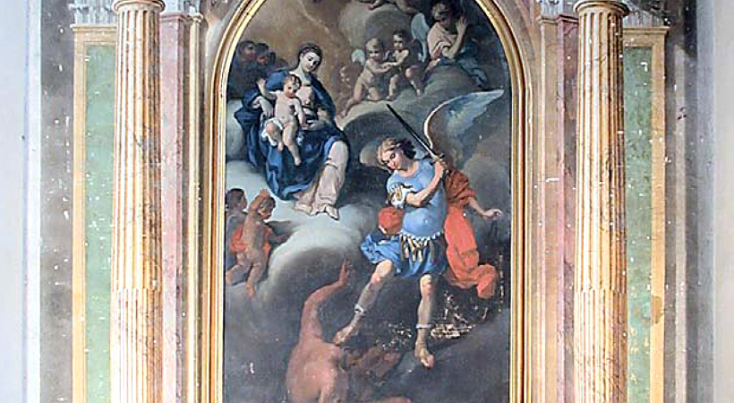 Due tele sono incorniciate da finte architetture prospettiche di Pietro Carattoli (XVIII sec.).