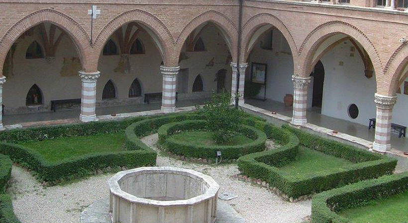 The former monastery, today site of the Scuola di Lingue Estere dell’Esercito (Italian Army Language School) has a splendid cloister, attributed to Matteo di Gattapone and considered one of the finest sample of cistercian architecture in Italy; it is characterized by ample white arcades on octagonal pillars pink and white striped with some figurative Roman capitals original of the previous cloister.