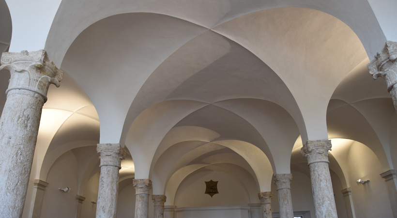 Altered during the passing of time until it became almost forgotten, the Domus has been by the same Nobile Collegio della Mercanzia rediscovered and thoroughly restored in 2014-16, with special care to techniques and materials, and resurrected to its original beauties of forms to be destined as open to the public for cultural activities as conferences, gatherings, meetings, exhibitions, chamber music concerts. With this purpose of public usefulness, for the sake of Porta Sant’Angelo and the city in its whole, in 2018 the Mercanzia has given it “in comodato gratuito” (loan for use) to Perugia Municipality.
