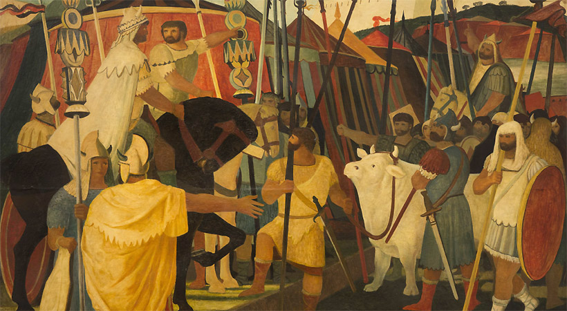 È un Ciclo di dieci dipinti sul tema “Le avventure, le sventure e le glorie dell’antica Perugia”, dipinte tra 1949 e il 1952: Cattura di San Francesco d’Assisi, Battaglia dell’Aquila, Assedio di Totila, San Benedetto da Norcia, San Francesco d’Assisi, Congiura dei Baglioni, Battaglia di Torgiano, Battaglia dei sassi, Niccolò Piccinino, Braccio Fortebraccio).Nelle battaglie vengono evocati i dipinti rinascimentali di Paolo Uccello e Piero della Francesca. Le figure dei due santi Benedetto e Francesco sono a contrapporre l’immagine di pace e religiosità che ancora oggi connota la nostra regione.Nel 1988 le dieci opere, furono donate dalla Perugina SPA, per volontà del fondatore, alla Regione Umbria ponendo come onere la pubblica fruizione.