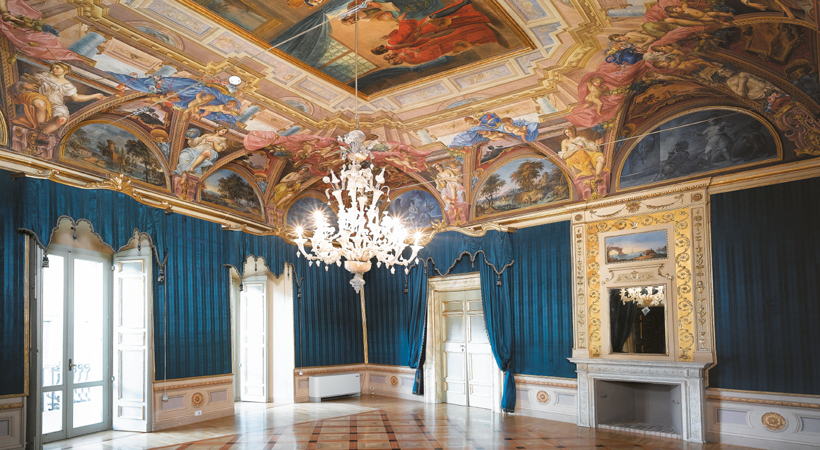 Inside decorations made mainly in the XIX Century. Of particular interest is the Sala delle Muse (Muse room) frescoed by the painter from Tolentino Mariano Piervittori in 1856.