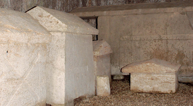 It witnesses different types of funerary rites, mostly consisting of chamber graves, as well as box and pit graves. The inhumation rite prevails, but the incinerating one is also attested, which has yielded numerous urns in travertine. It is possible to visit one of the underground chamber tombs, from the late IV-III Century b.C., with a sandstone slab sealed the entrance, found during excavations in the early 1900s.