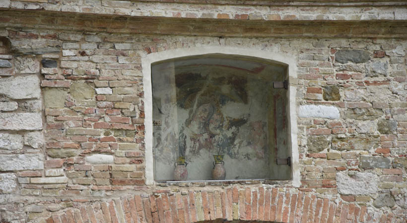 Like many other doors, above the arch in the interior, is a coeval painting (XVIII Century) decayed due to exposure.