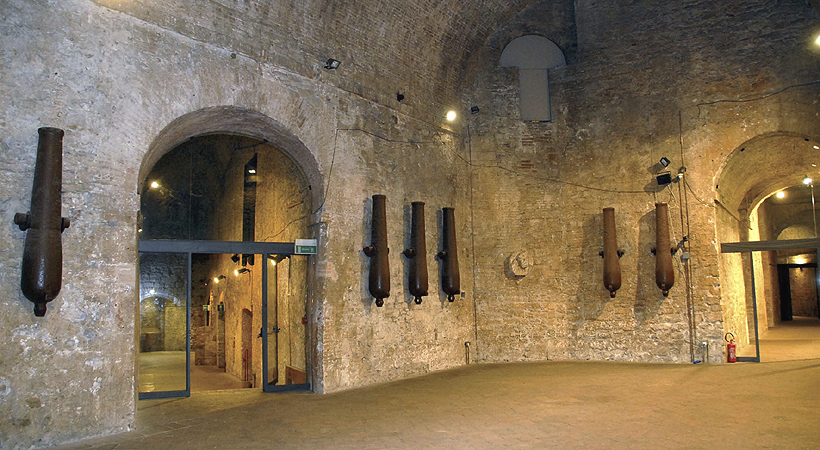 The Rocca Paolina was five levels high, composed of a main construction and a smaller one, connected by a corridor. The first was built on Colle Landone and the second, the Rocca Minore, also called “Tenaglia” (tongs), was used as front garrison. The fortress, symbol of pontifical domain on the city, was partly destroyed in 1848, rebuilt in 1860 by Pope Pius IX and then razed to the ground in the same year  in the part occupying the present Piazza Italia.