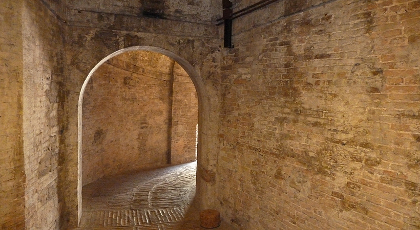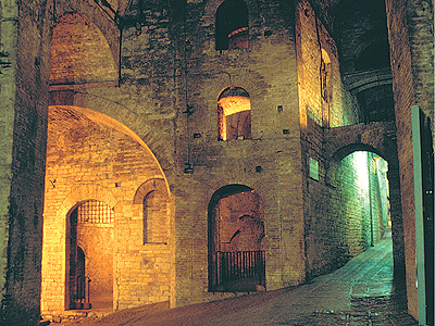 The mighty fortress, based on the design by Antonio da Sangallo il Giovane (1540-1543), encompassed the houses, towers and streets of an entire district, recognisable within the complex, and the consequential razing to the ground of the houses of the Baglioni family, of the borough of Santa Giuliana, of the church of Santa Maria dei Servi and of many other medieval buildings.