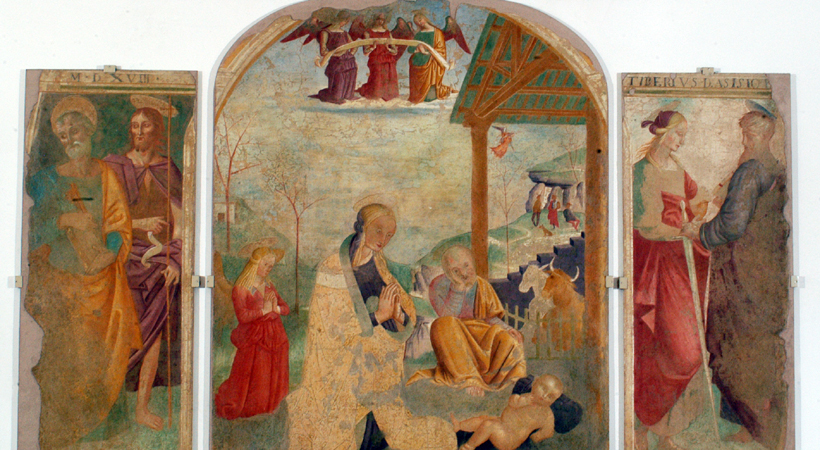 On the site of the former church of San Severo. Built around 1339 and it was seat of the first archive of the Municipality