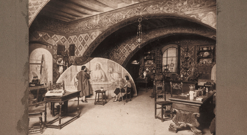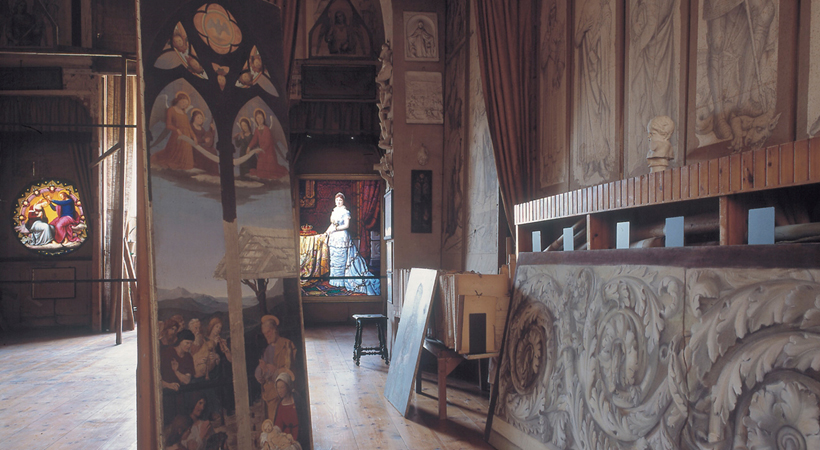 It is an interesting museum-archive-workshop, with an enclosed library,  kept today as it was conceived in the XIX Century; the wall decorations and the furnishings of the two large rooms are in Neo Gothic Style.