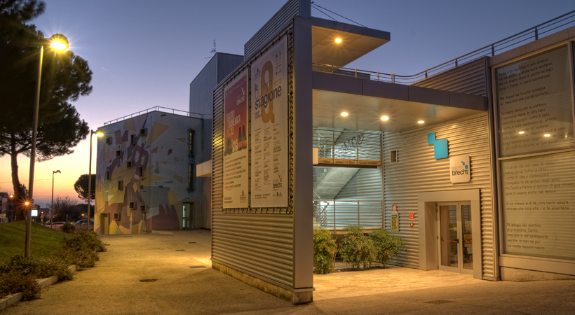 Opened in 2009, the Brecht Theatre has been built in the populated district of San Sisto, subject to important urban and social changes. It is placed next to the Sandro Penna Library and is the result of an important economic investment of the Municipality in order to give the city a new modern and functional space, a cultural pole that, along with the library, can give new impetus to the neighbourhood.