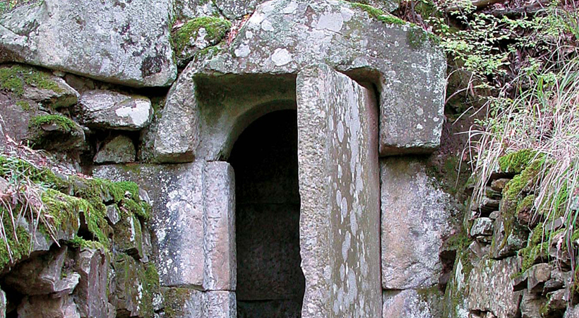 The Etruscan Tomb of the Faggeto was discovered between 1919 and 1920 by chance, by a lumberjack in a beech wood from which the name of the place and the tomb. It is located on a hill near Monte Tezio, in the area of San Giovanni del Pantano. It is dug into the natural ground, consisting of sandstone blocks, and is preceded by a narrow access corridor, carved into the slope of the hill. Inside of it was found a cinerary urn and some funerary objects. The specificity, unique for the chamber tombs found around Perugia, is the presence of the closing door and of the little barrel vault. The thick monolith bestows includes two truncated conical plins which, inserted in the appropriate cavities obtained in the threshold and in the lintel, allow rotation. The tomb can be dated from the second half of the II century B.C.