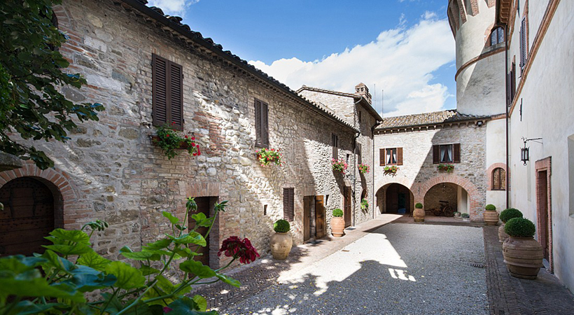 The castle of Bagnara is right at the centre of the Tenuta di Bagnara, ancient farm of the Media Valle del Tevere umbra, few kilometers north of Perugia. It is composed by a gathering of buildings made starting from the XI Century, the first of which was a building made as manor with rooms with cross vaults and, in the long part, a square little tower. Afterwards also a stone mill was added, and in the XUV Century, a rounded tower.